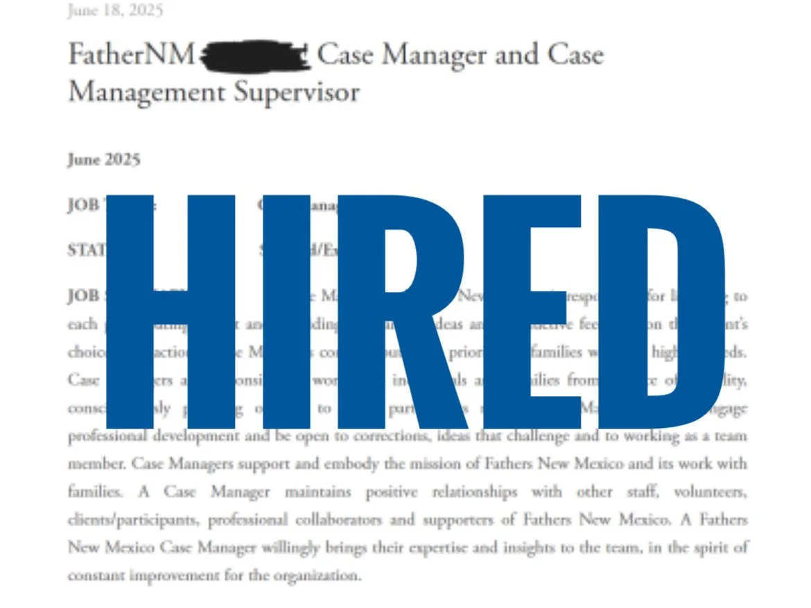 FatherNM is hiring! Case Manager and Case Management Supervisor